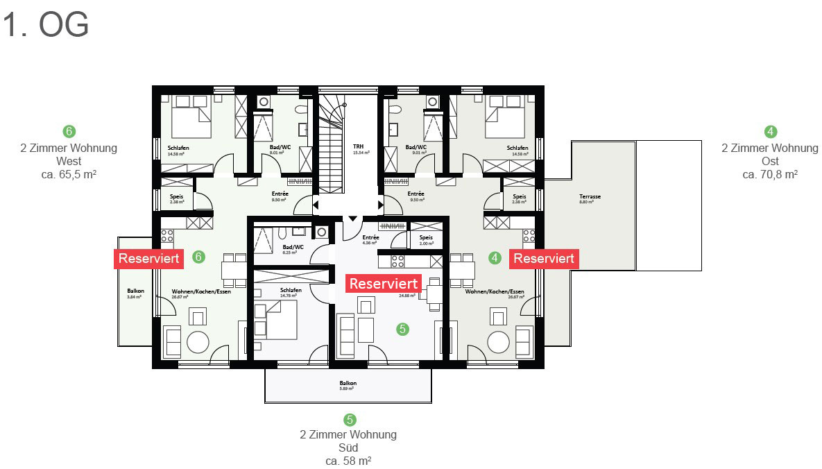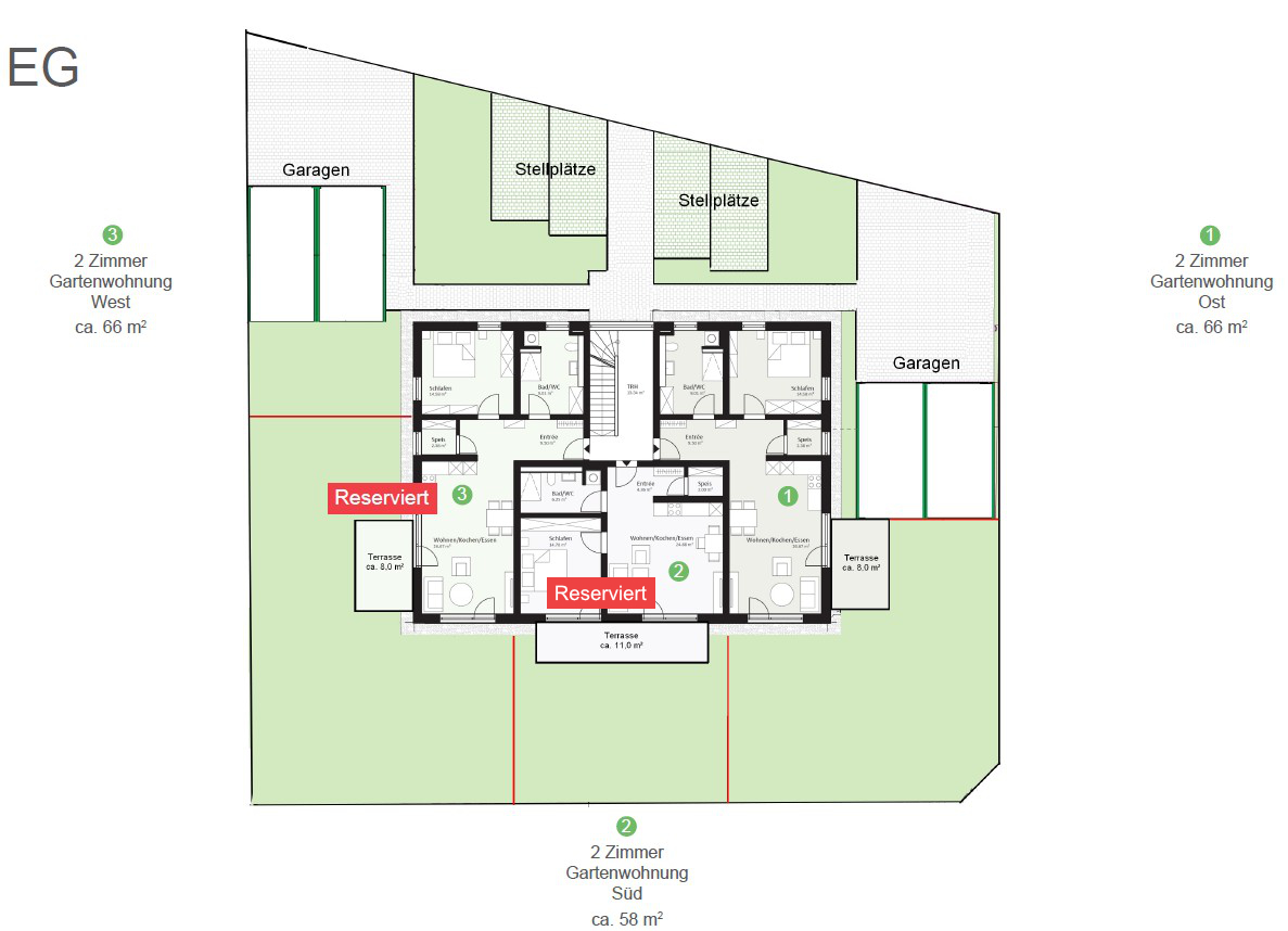 Das ruhig gelegene Mehrfamilienhaus bietet eine ganze Reihe von Merkmalen, die auch besonders anspruchsvolle Menschen begeistern. Die durchgehend nach Süden ausgerichteten Wohnbereiche mit ihren großflächigen Fenstern sorgen für ein helles und heiteres Ambiente. Bäder die sich in Ihrer Ausdehnung nicht auf das minimale Mögliche reduzieren, sondern eine vollwertige Gestaltung bieten, und so den Tag in den Start Tag zu einem angenehmen Erlebnis machen. Die Schlafzimmer bieten durch die Möglichkeit vielfältige Möblierungskonzepte umzusetzen, Raum zu individueller Gestaltung. Aber auch an scheinbare Kleinigkeiten, die im Alltag umso wichtiger sind, wurde gedacht: Platz für eine Garderobe die diesen Namen verdient, und eine kleine Abstellkammer für Dinge des täglichen Bedarfs haben in allen Wohnungen Ihren Platz gefunden.